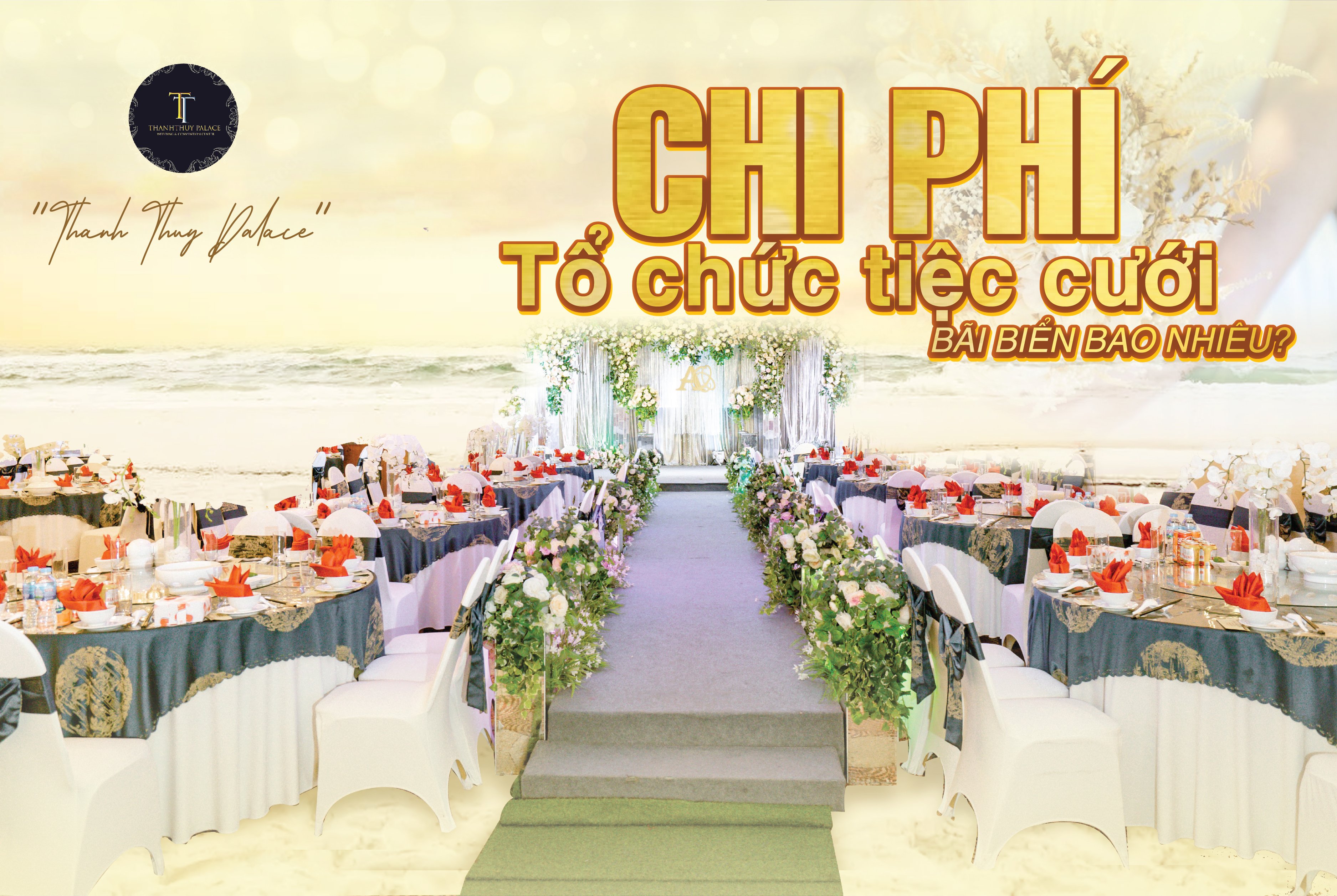 Tổ chức tiệc cưới trên bãi biển với biển xanh, nắng vàng, bãi cát trắng mịn mang đến cho các cặp đôi những phút giây lãng mạn và mới lạ. Đây không chỉ là điều mơ ước của nhiều cặp đôi trong ngày trọng đại của cuộc đời, mà đó còn trở thành kỷ niệm đẹp cho cô dâu chú rể. Tuy nhiên, chi phí tổ chức tiệc cưới bãi biển luôn khiến nhiều người lo ngại vì sẽ cao hơn tổ chức trong nhà hàng. Vậy cụ thể chi phí tổ chức tiệc cưới bãi biển là bao nhiêu? Hãy cùng Thanh thủy Palace tham khảo bài viết sau nhé!